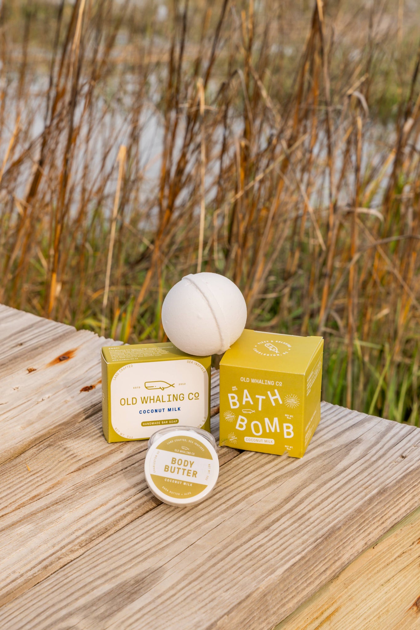 Made in historic Charleston, SC, with baking soda, citric acid, epsom salts, olive & soybean oil, each Old Whaling Co. 8oz bath bomb will leave your skin feeling moisturized and lightly scented. Our handcrafted bath bomb's soothing fizz and sea-inspired fragrance are perfect for a relaxing soak, rejuvenating the senses and cleansing the skin.